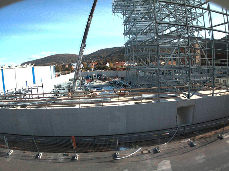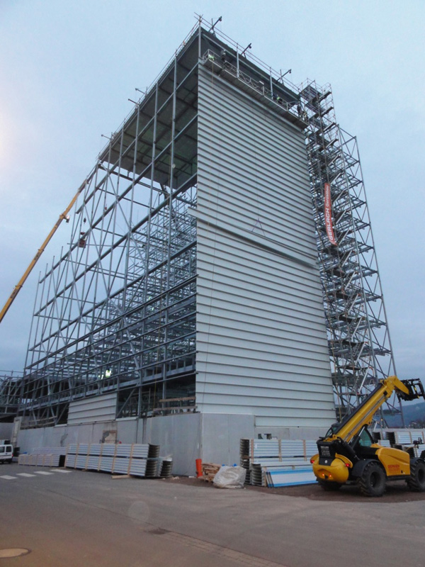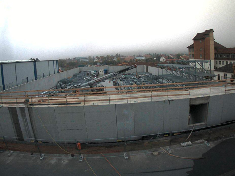 Auf beiden Baustellen wird mit Hochdruck gearbeitet, damit das erklärte Ziel, die beiden HRL-Anlagen noch bis zum Jahresende mit Dach- und Wandelementen zu versehen, erreicht werden kann.