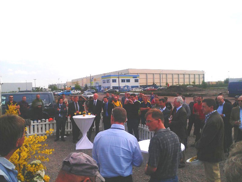 Nach dem Aufbau wesentlicher HRL-Regalkomponenten und den ersten Rohbaumaßnahmen für die Gebäudeabschnitte AKL, Kommissionierung, HRL-Vorzone, WE- und WA-Zone sowie Verwaltung und Technik konnte am 08. Mai 2012 das Richtfest gefeiert werden ...