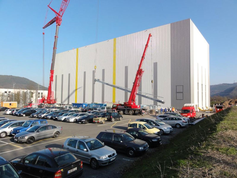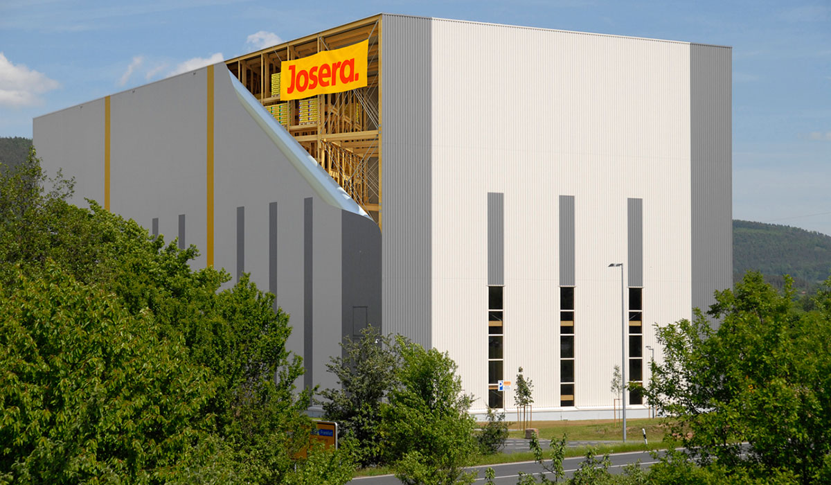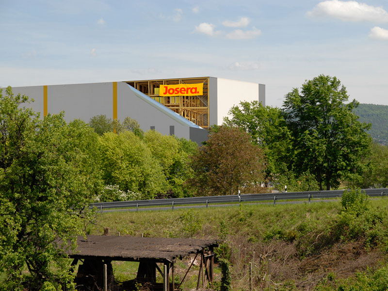 Das zweite Hochregallager (H = 20 m, 31.000 PP) aus Brettschichtholz (BSH) in Deutschland entsteht derzeit als klassisches HRL ohne Kommissioniertunnel etc. beim Bio-Lebensmittelhändler ALNATURA in Mannheim. Abgerundet wurde die Entscheidung für den Baustoff Holz unter anderem durch einen gemeinsamen Besuch mit dem ALNATURA-Geschäftsleiter Herrn Alexander Link bei Josera im Dezember 2011.
