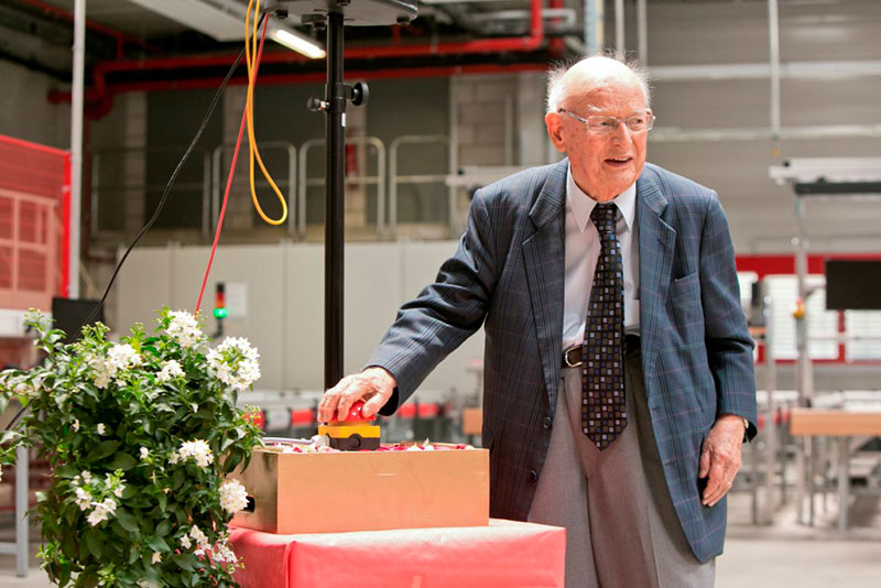 Danach erfolgte der offizielle Start der neuen AKL- und Fördertechnik durch Herrn Dr. L. Roth mittels Druck auf einen übergroßen Startknopf.