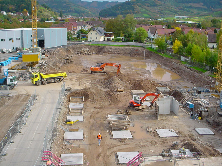 Bereits kurz nach der erfolgreichen GU-Logistikvergabe, erfolgte die Vergabe des Rohbaus für Formatgebäude, HRL-Bodenplatte, Brandwände, Versandgebäude inklusive Überbauung der internen Verkehrsstraße an die Rendler Bauzentrum GmbH.