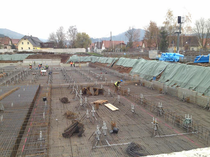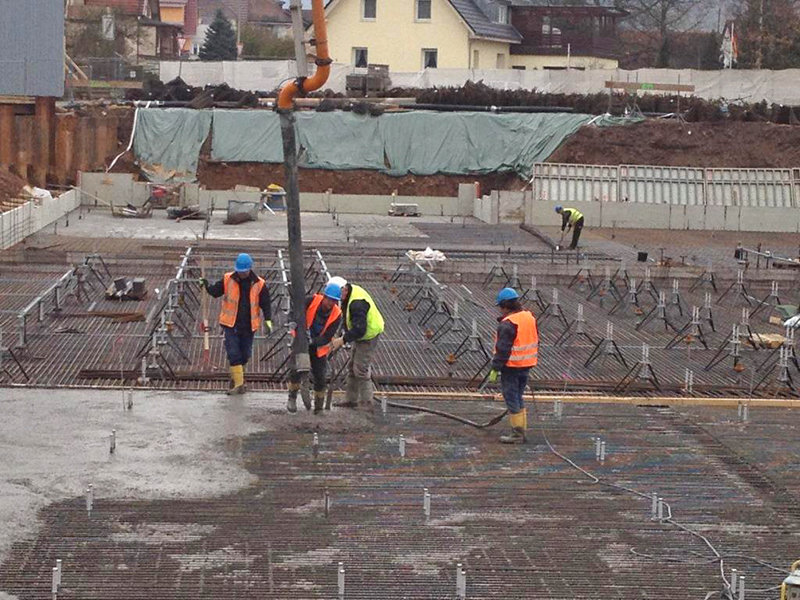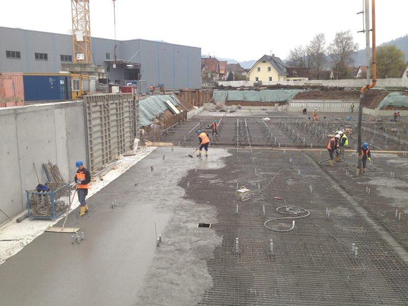 Die Fertigstellung der HRL-Bodenplatte mit 70 cm Stärke steht unmittelbar bevor.