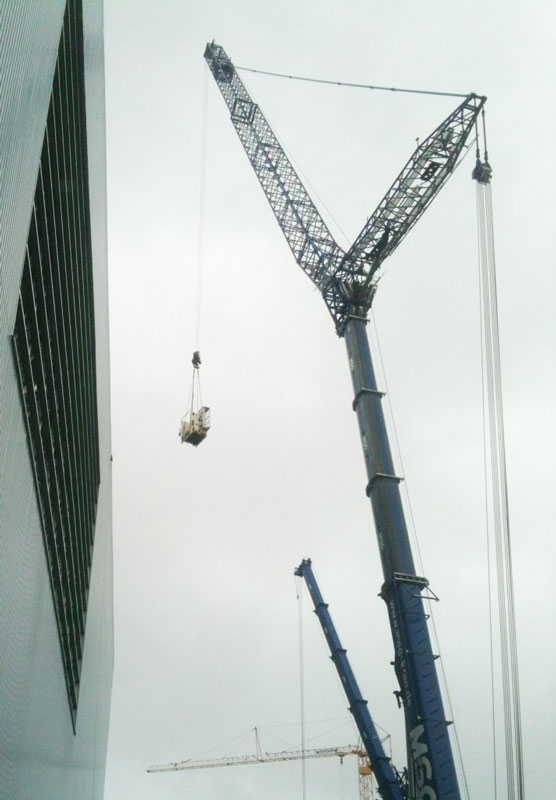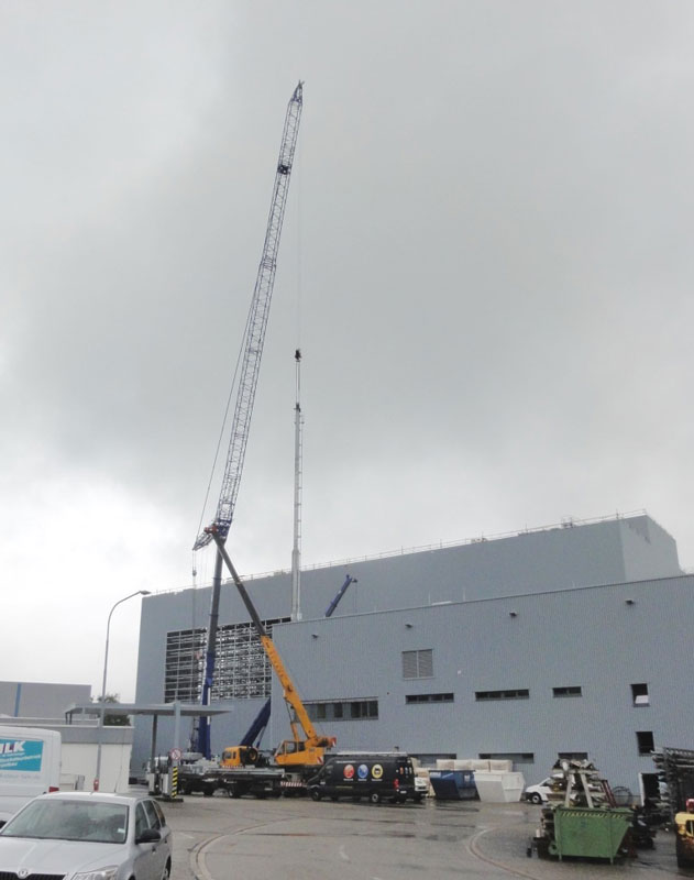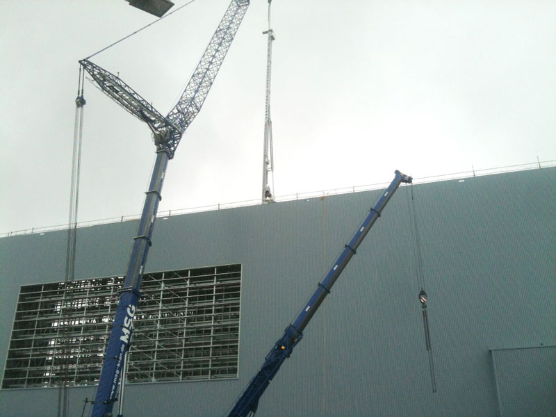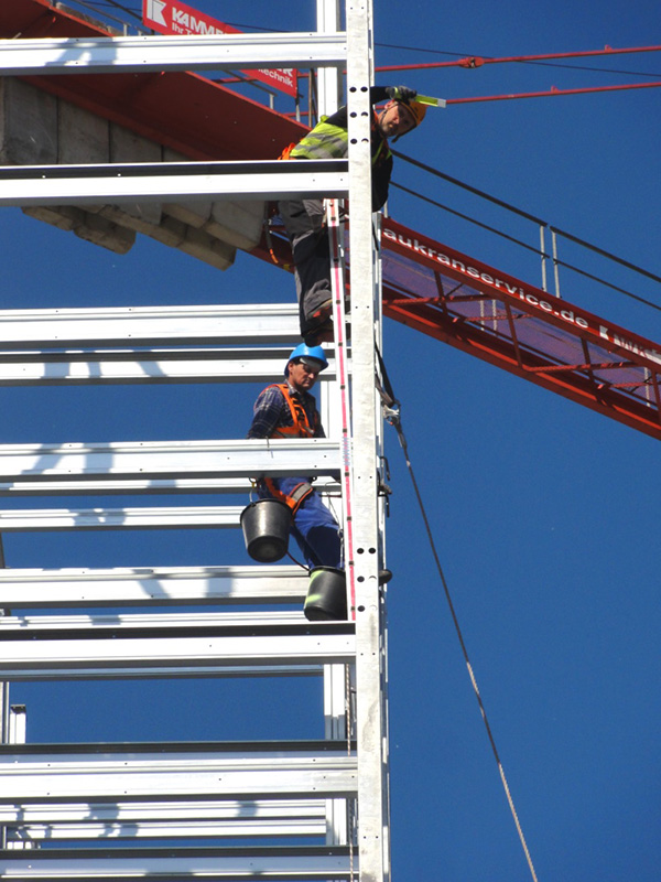 Aufgrund anhaltend schönem Wetter konnten die angedachten Schritte zur HRL-Fertigstellung sowohl beim Stahlbau, wie auch bei den Fassadenelementen bestens eingehalten werden. Insofern erfolgt in KW 27 der Abbau des Montagekrans.