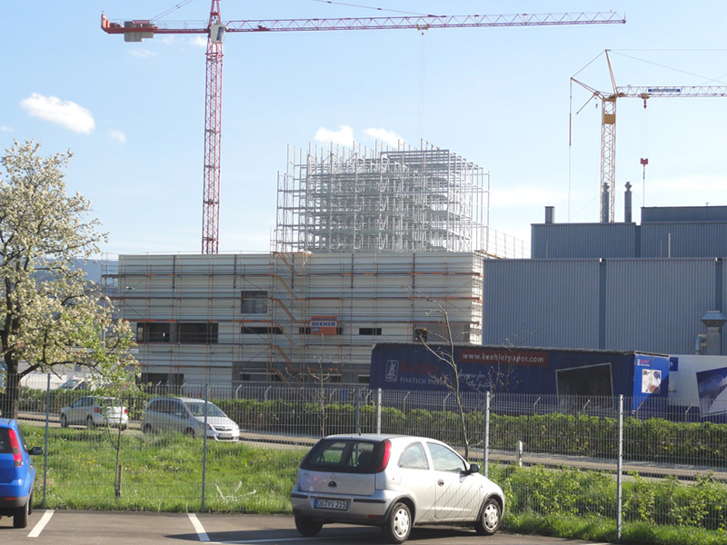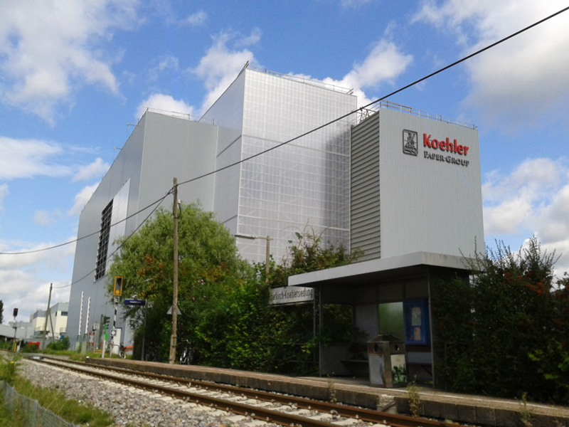 Wesentlich für die Akzeptanz des neuen Koehler-HRL bei den Behörden und der Bevölkerung war die angepasste HRL-Fassade an der Stirnseite zum Straßenverlauf der zukünftigen B28 und die abgesetzte HRL-Dachstruktur zur optischen Reduzierung der HRL-Höhe.