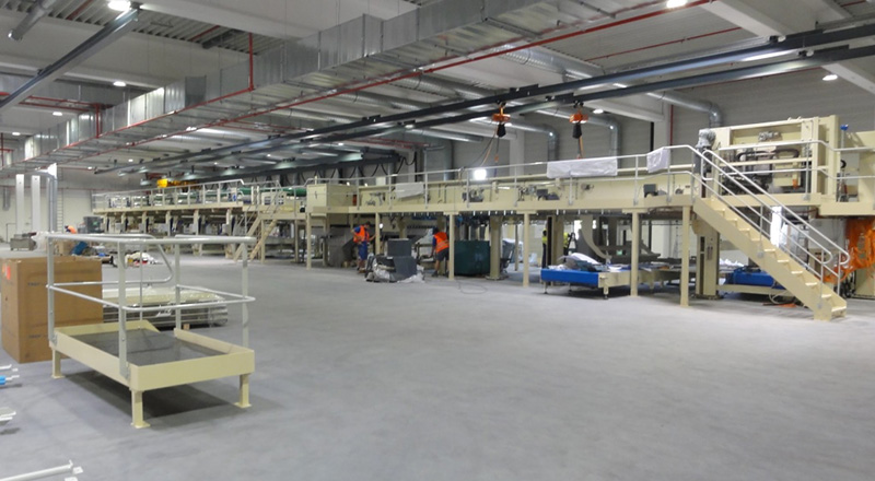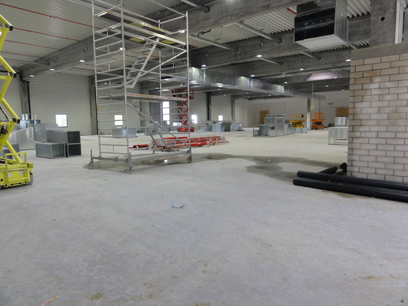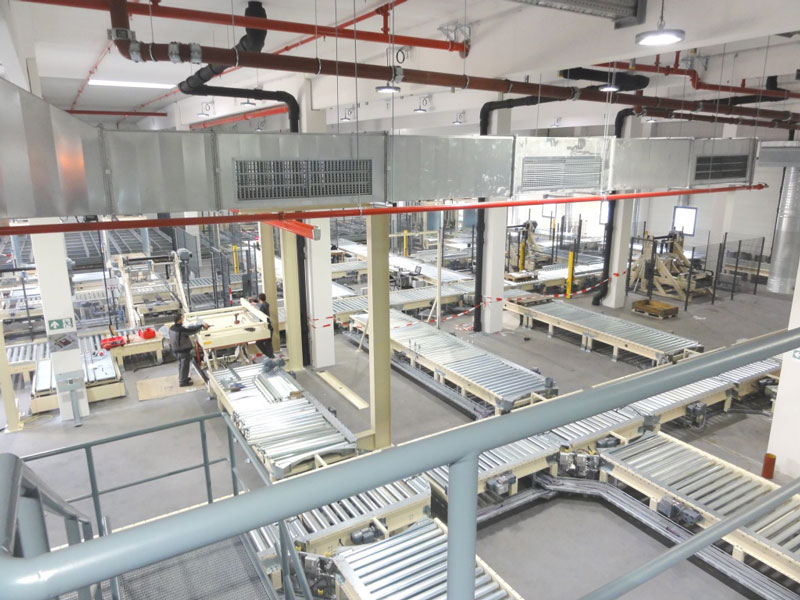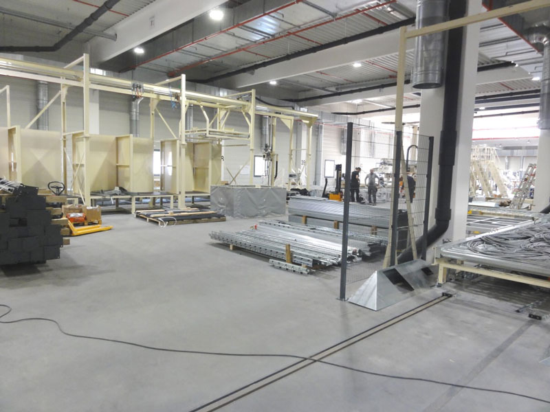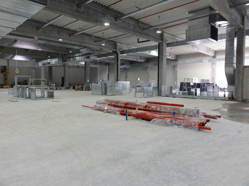 Auch innerhalb des Formatgebäudes erfolgt der Aufbau der Bearbeitungs- und Förderanlagen termingerecht.