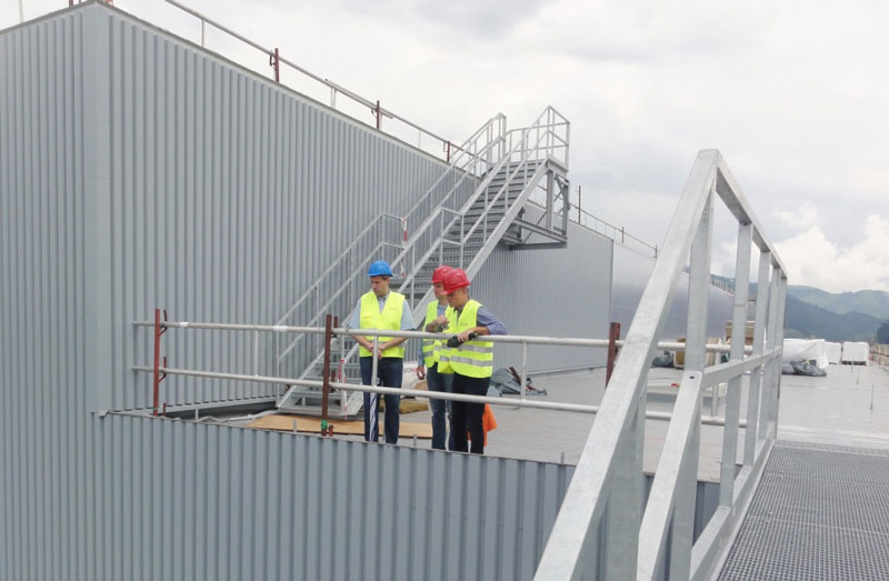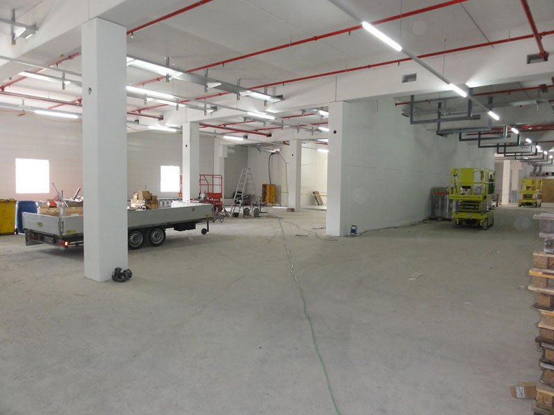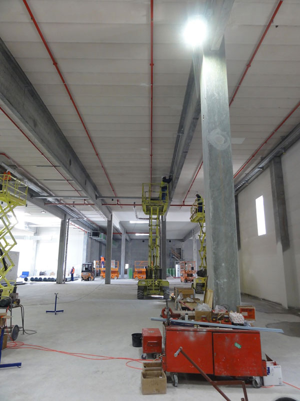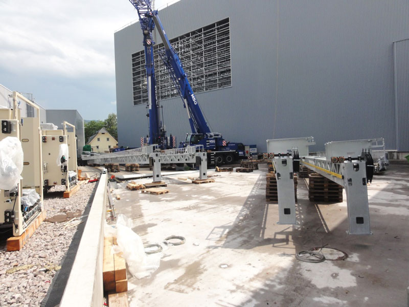 Sowohl im Bereich des HRL als auch im davorliegenden Formatgebäude sind die Montagearbeiten und erste Testläufe bei den maschinellen Anlagen noch in vollem Gange, um den sportlichen Inbetriebnahme-Termin im Dezember 2014 zu erfüllen.
