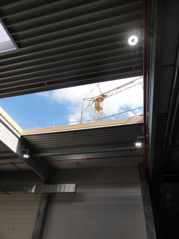 Einen guten Überblick über den aktuellen Projektstand bezüglich der Fortschritte beim HRL-Stahlbau und bei den Dach- und Fassadenarbeiten zeigen die nachfolgenden Luftaufnahmen.