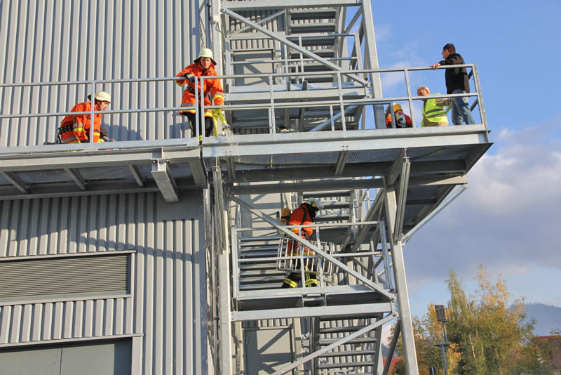 Kurz vor der im Dezember geplanten Inbetriebnahme des neuen Formatgebäudes und des HRL nutzte die Koehler-Werksfeuerwehr mit Unterstützung umliegender freiwilliger Feuerwehren die Gelegenheit zu einer ersten Trainingseinheit, welche zukünftig mindestens einmal jährlich wiederholt wird.