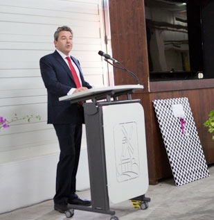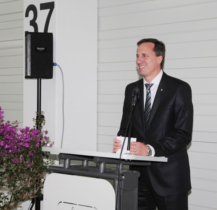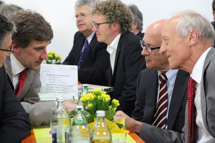 Als Gäste konnten die Koehler-Verantwortlichen dabei unter anderem den OB Matthias Braun, die Fraktionsvorsitzenden und Herrn Peter Bercher als Leiter des Stadtbauamtes begrüßen. Abgerundet wurde der Empfang durch die Vertreter der mit der Planung und Ausführung betrauten Büros / Firmen der Bau- und Logistikgewerke sowie einer großen Anzahl von Koehler Mitarbeitern.