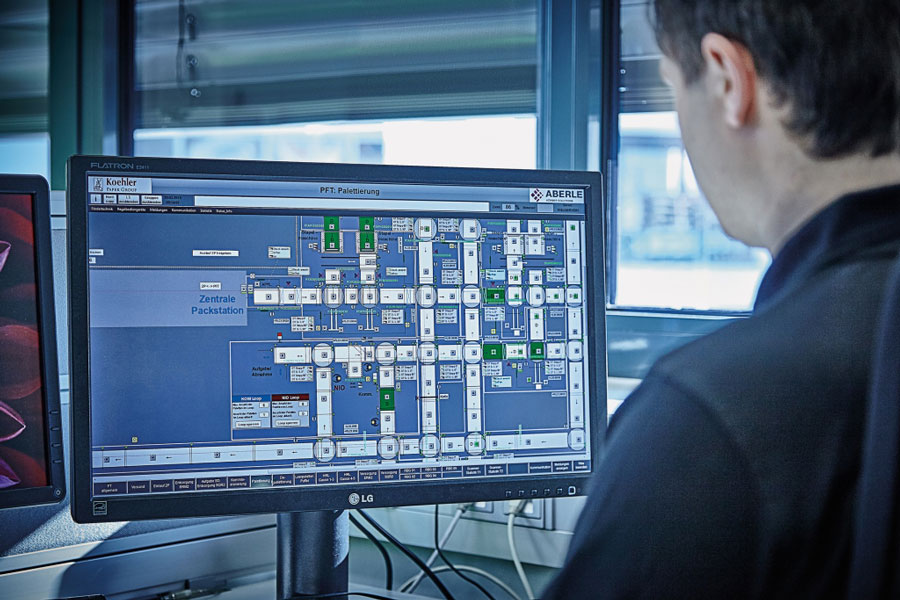 Die dafür notwendige Materialflusssteuerung (MFR) und Lagerverwaltung (LVS) basiert auf einem von uns in enger Zusammenarbeit mit dem internen Koehler-Projektteam im Vorfeld der Ausschreibung erstellten MFR- / LVS-Lastenheft. Nach der GU-Vergabe der Logistik- und IT-Gewerke an die Aberle GmbH erfolgte die gemeinsame Weiterentwicklung und Verabschiedung im Rahmen der Pflichtenheftphase.