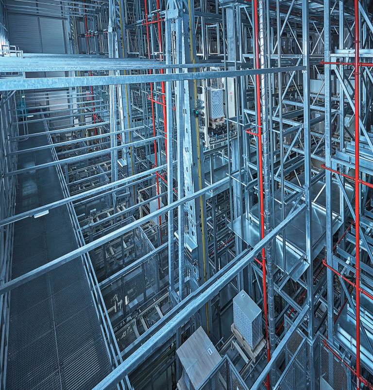 … ins Hochregallager (HRL) und Versandgebäude