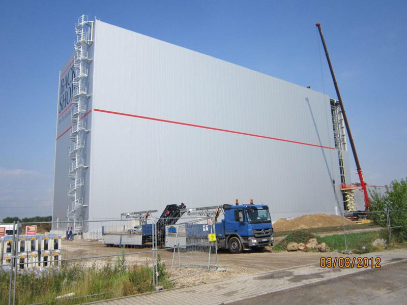 Aufgrund der Schönwetterphase konnten die durch den langen Winter bedingten Terminverschiebungen im Rohbau und bei der Regalmontage durch zielführende Projektsteuerung weitgehend kompensiert werden.